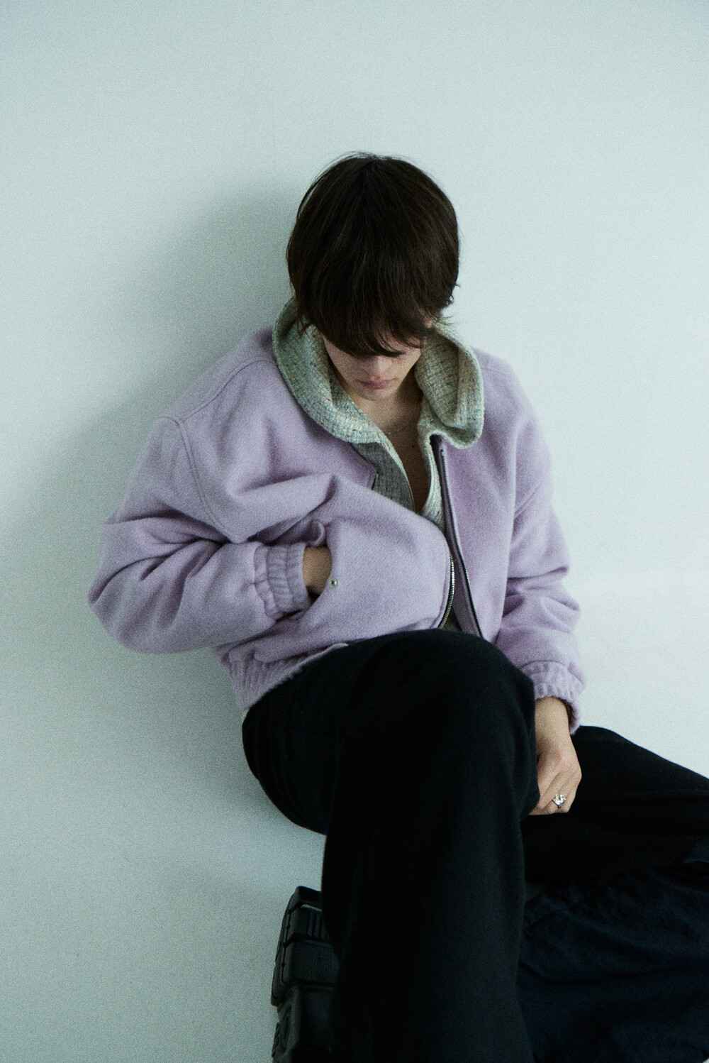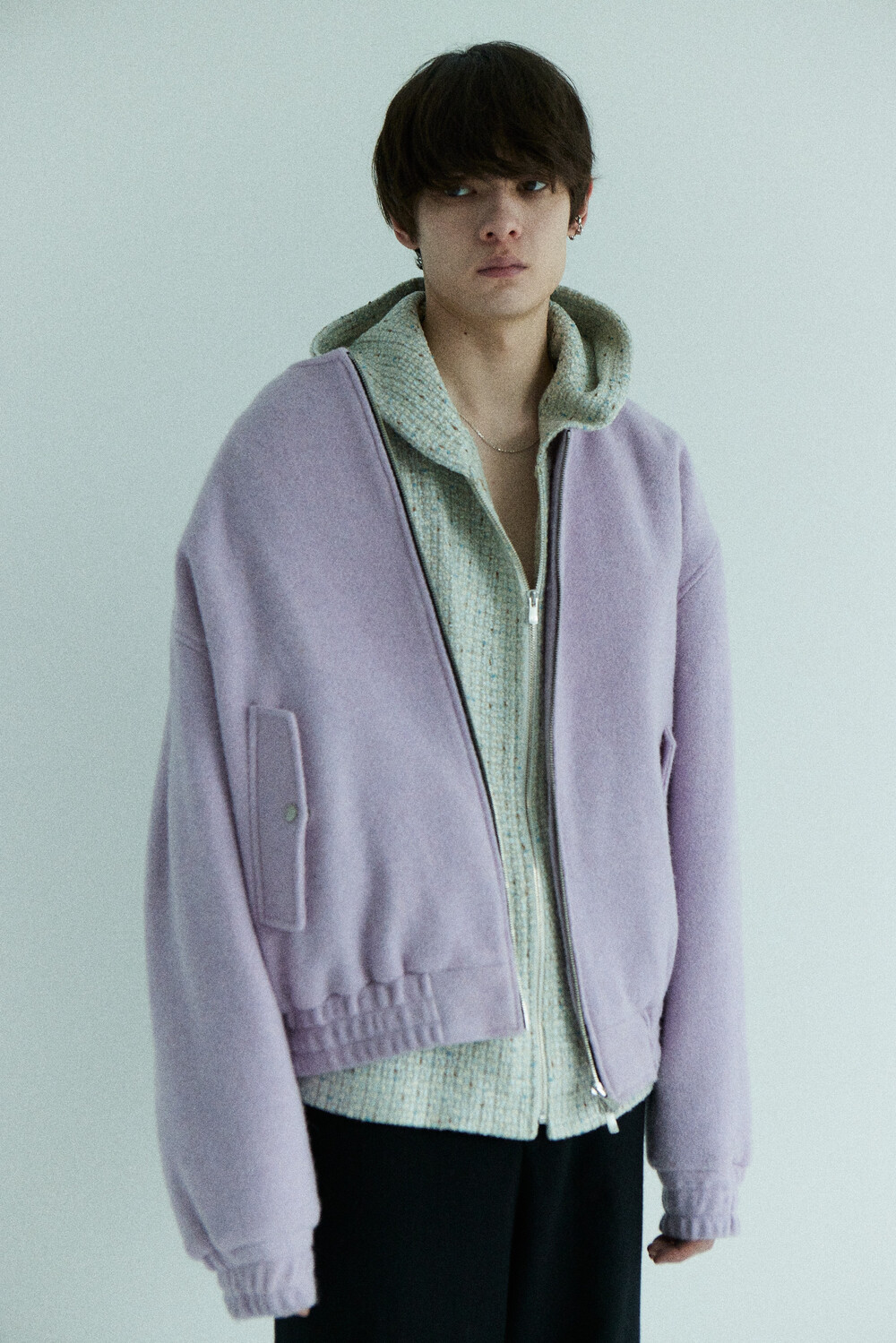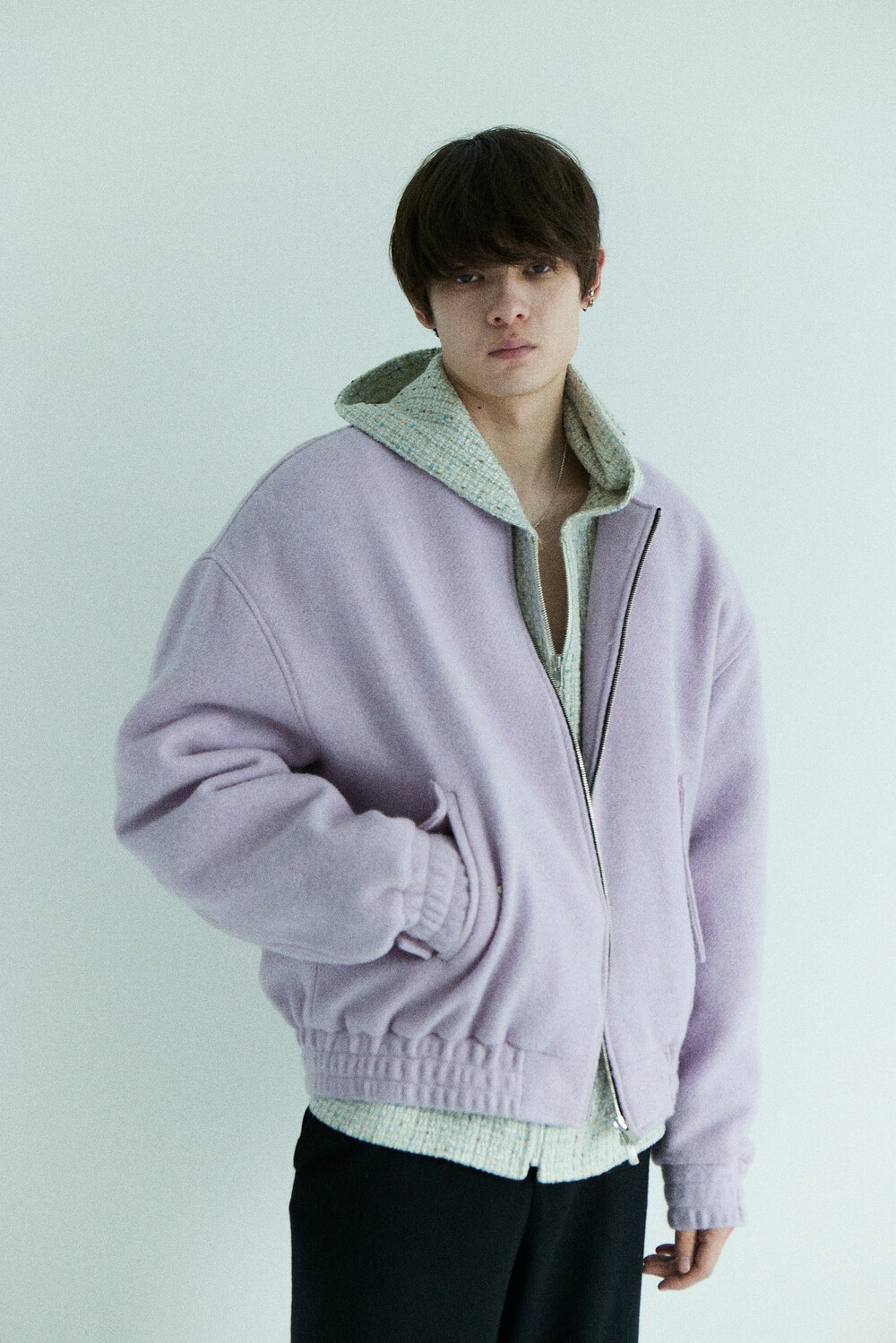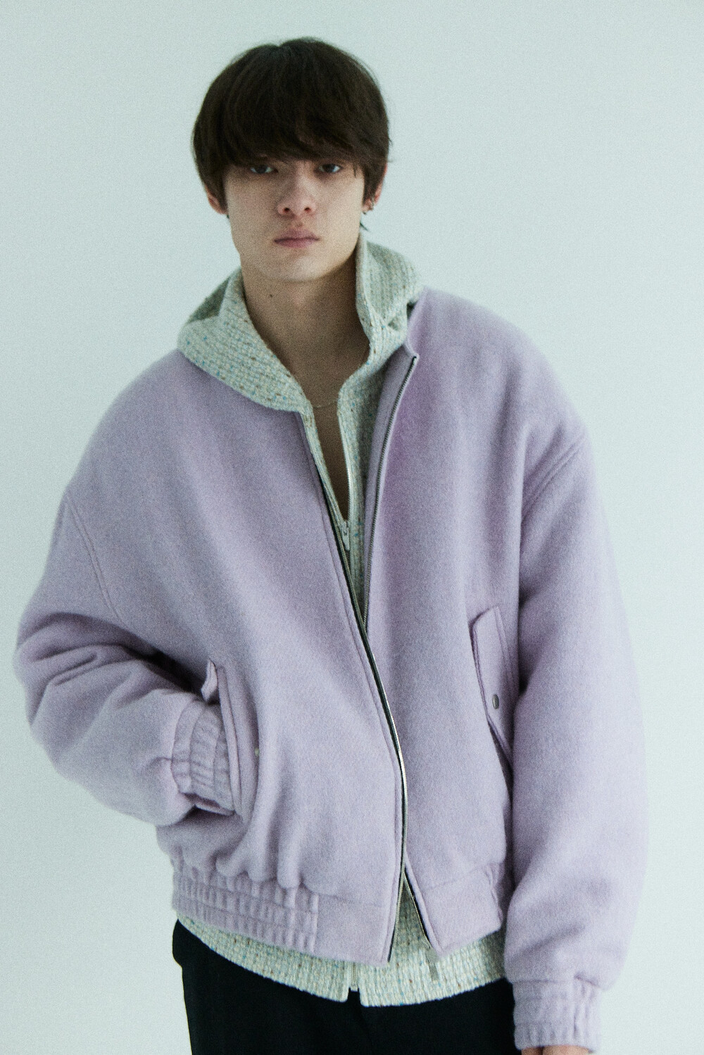 lavender tweed wool bomber