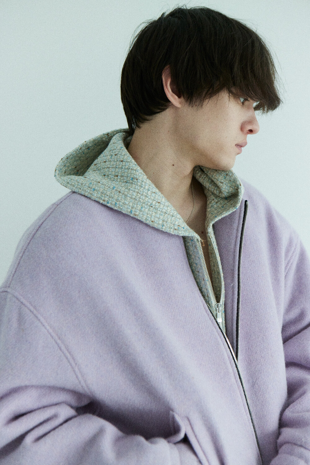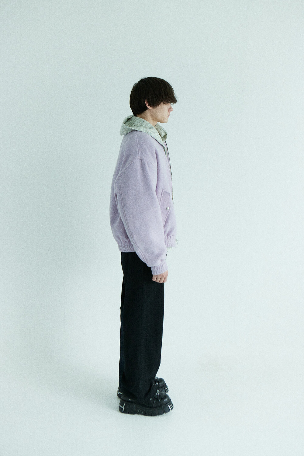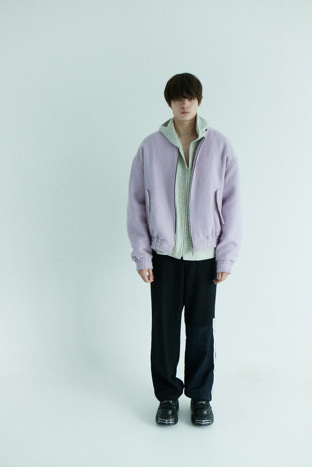 lavender tweed wool bomber