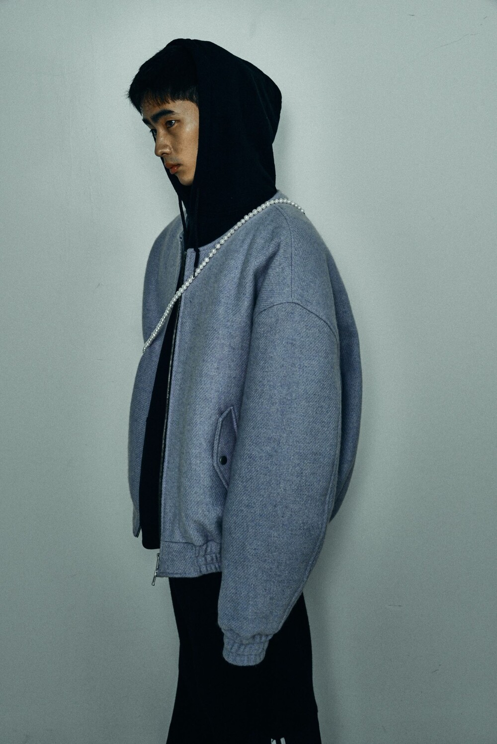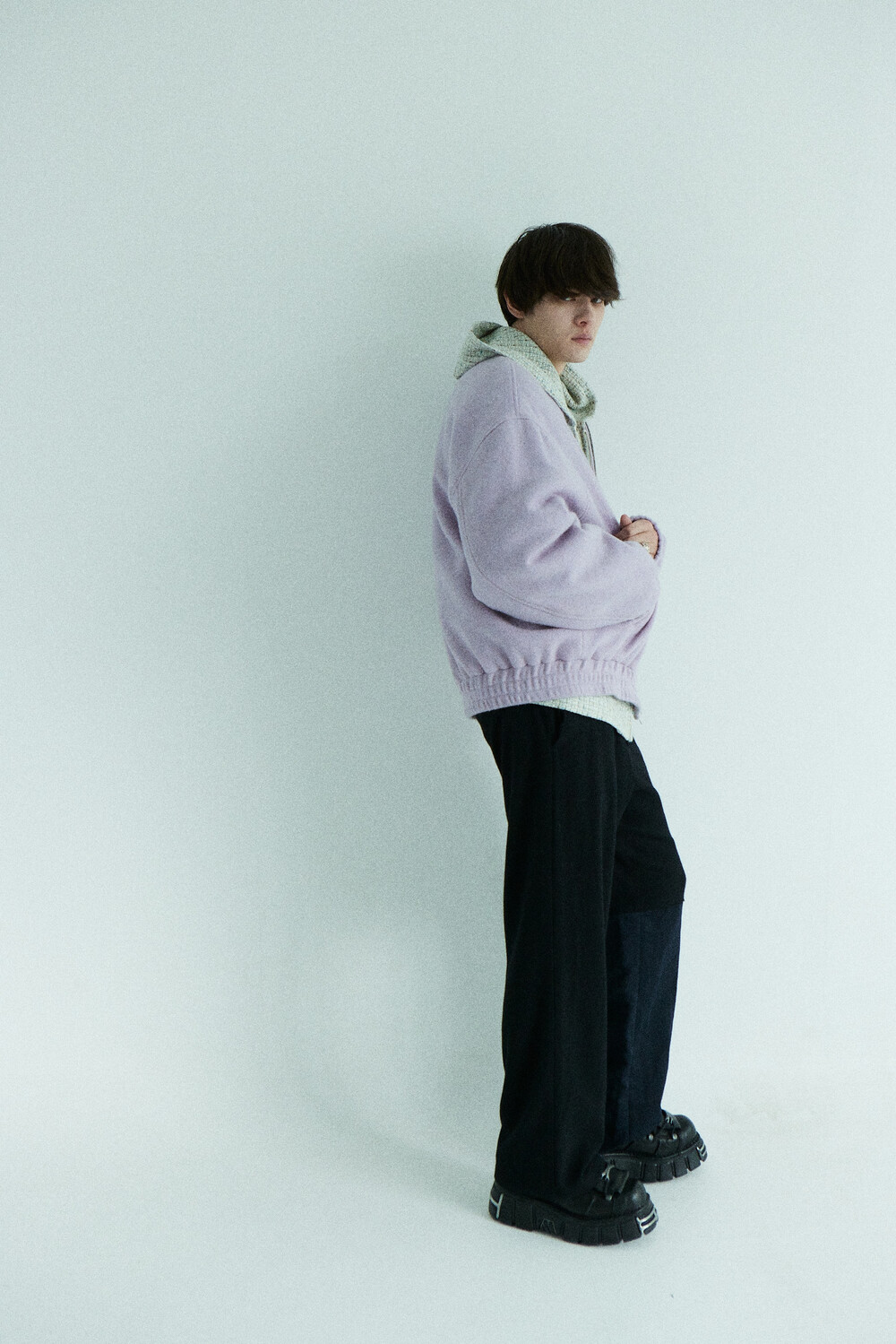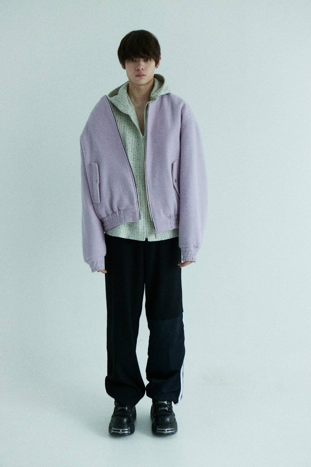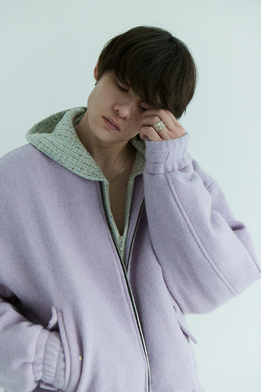 lavender tweed wool bomber