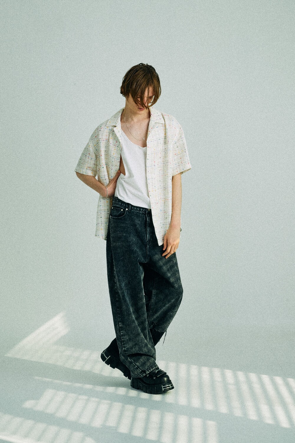 M - 어깨 51cm 가슴 59cm 소매 25cm 총장 77cm