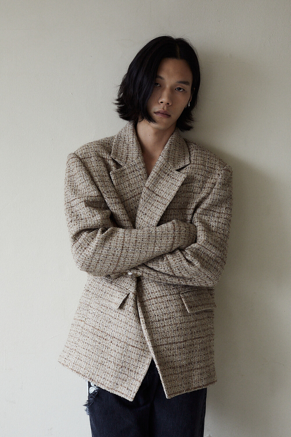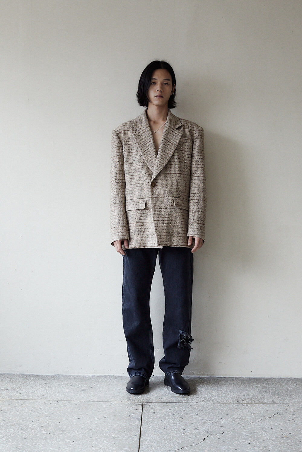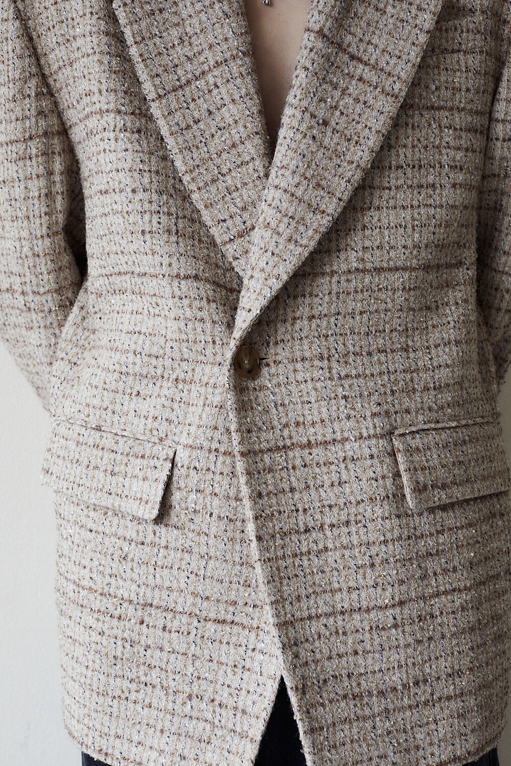 자연스럽게 여미는 느낌으로 설계된 싱글 블레이져