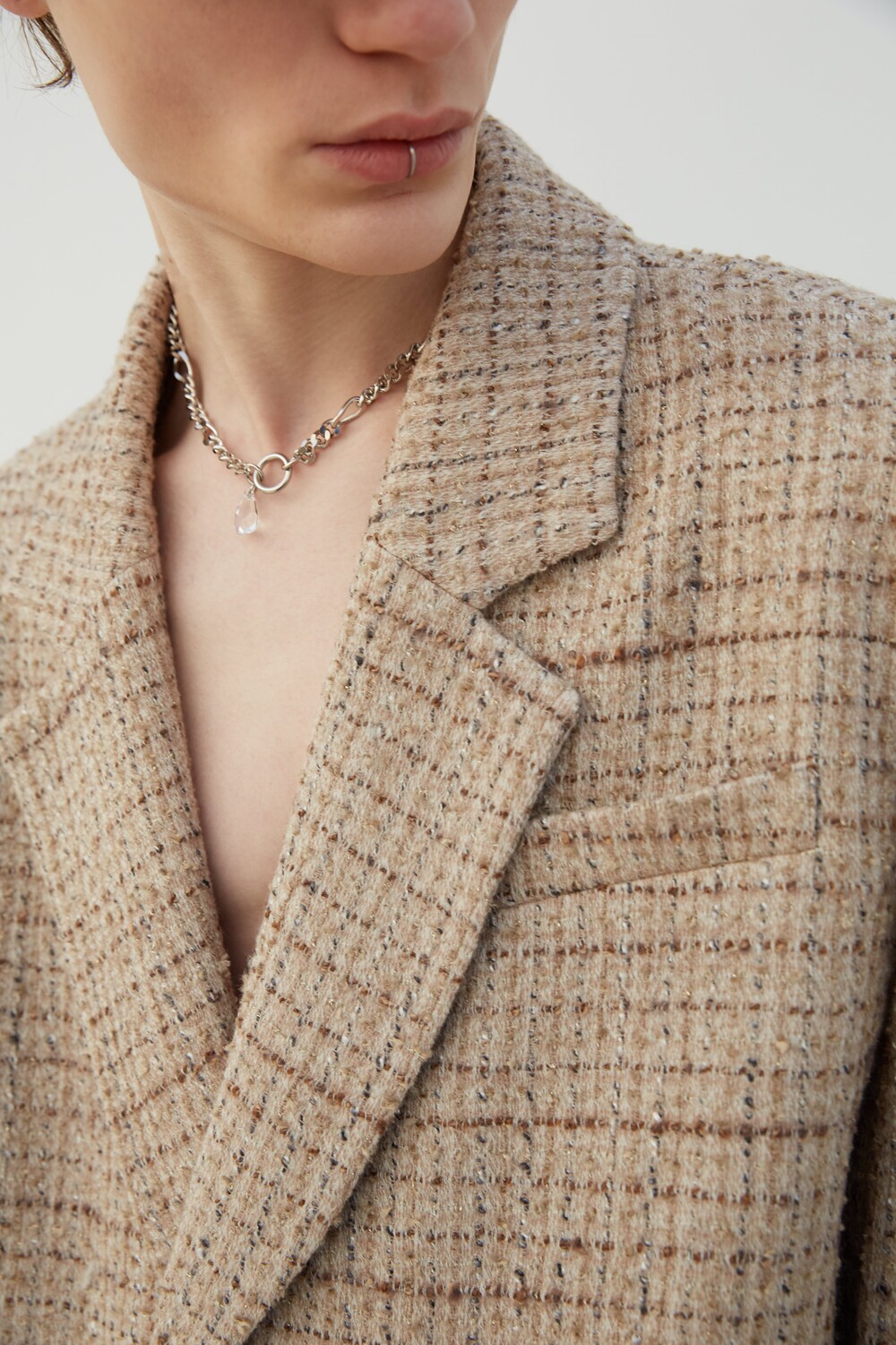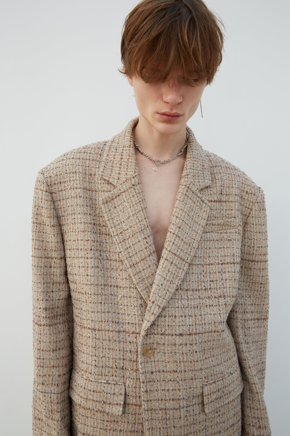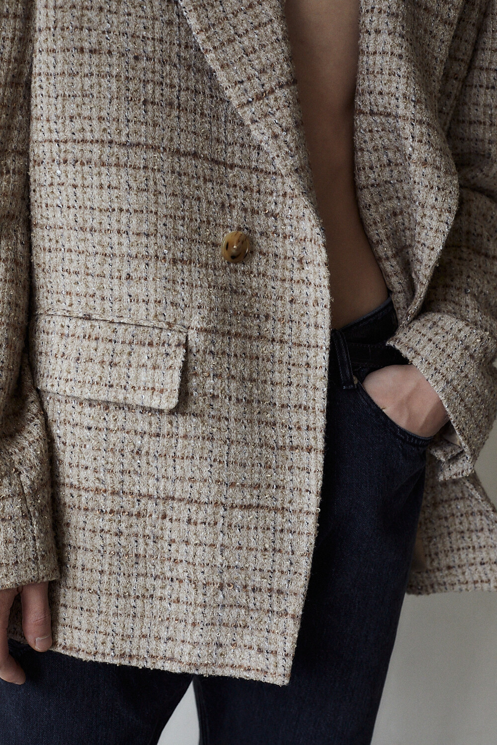자연스럽게 여미는 느낌으로 설계된 싱글 블레이져