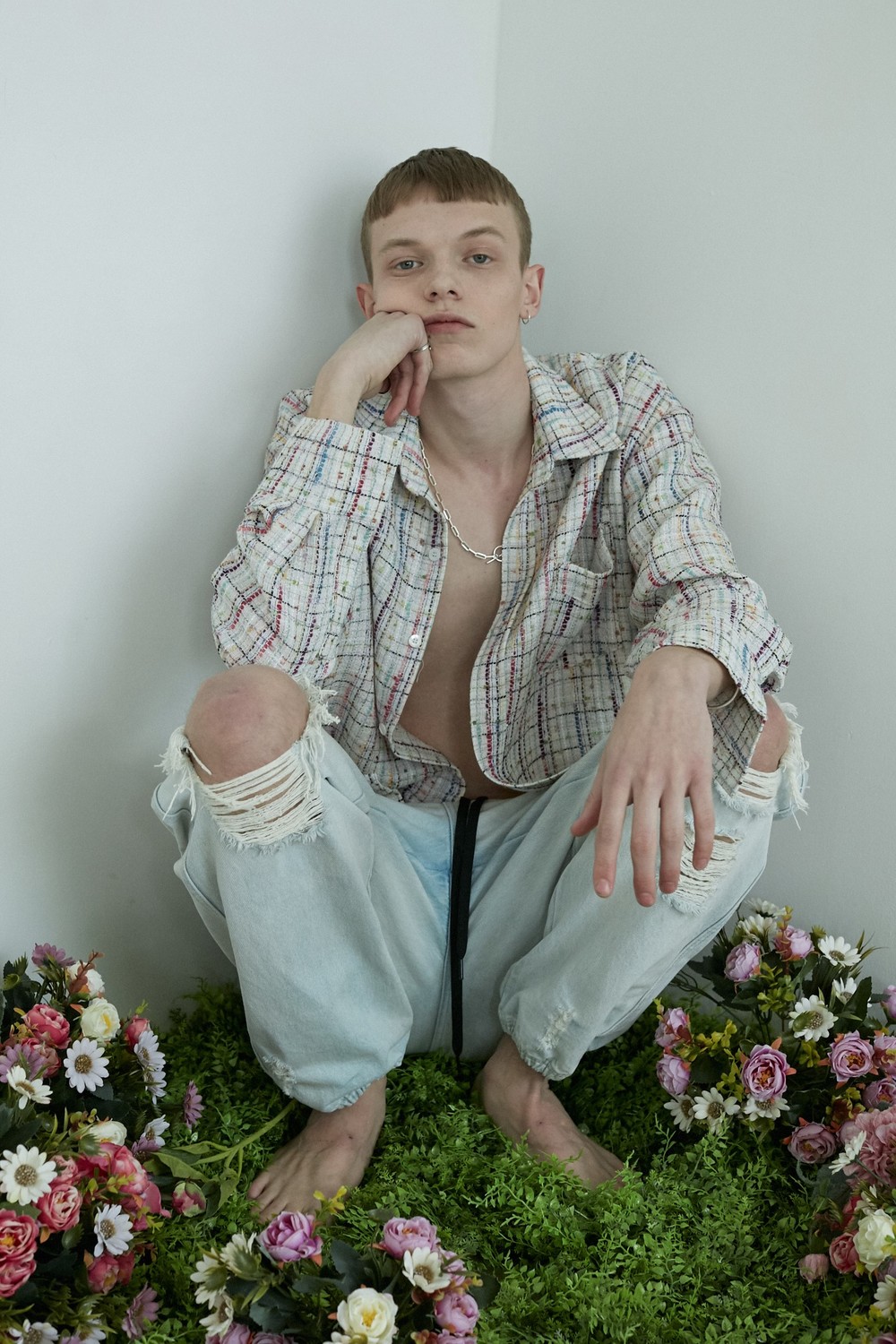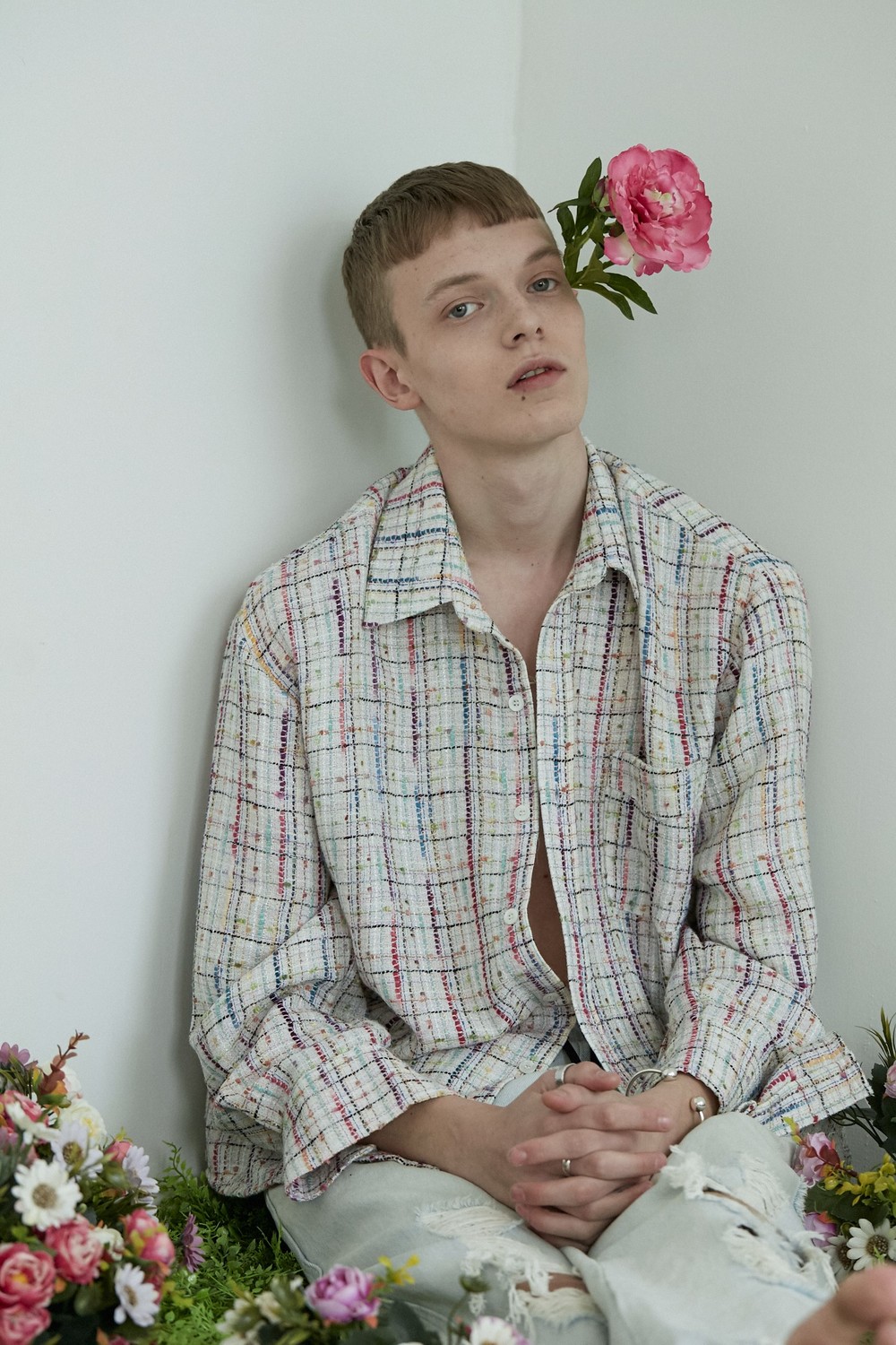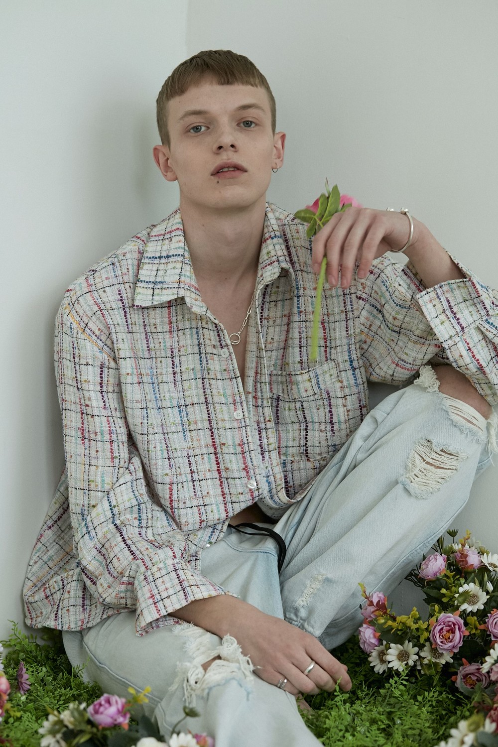 white-multi tweed shirt