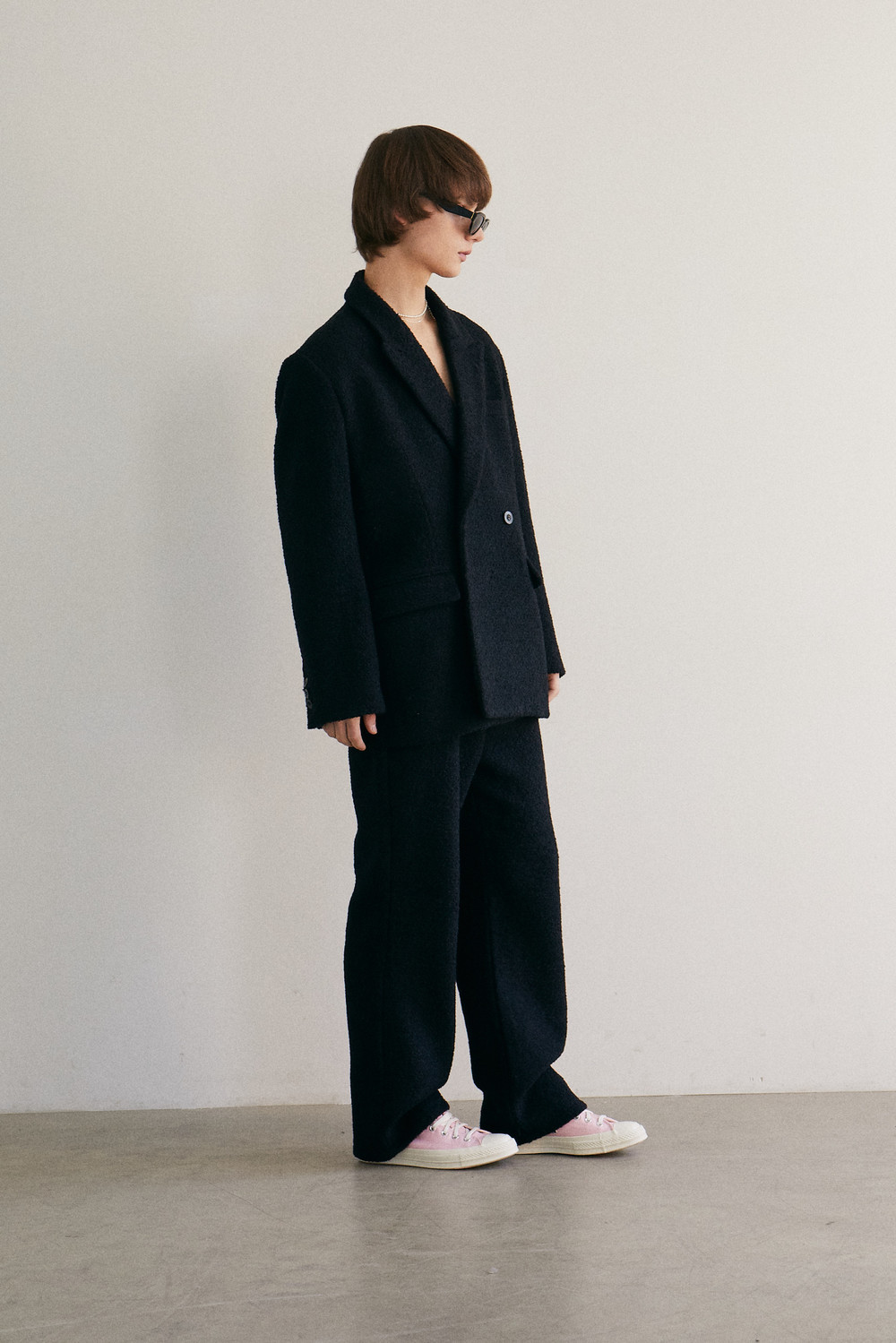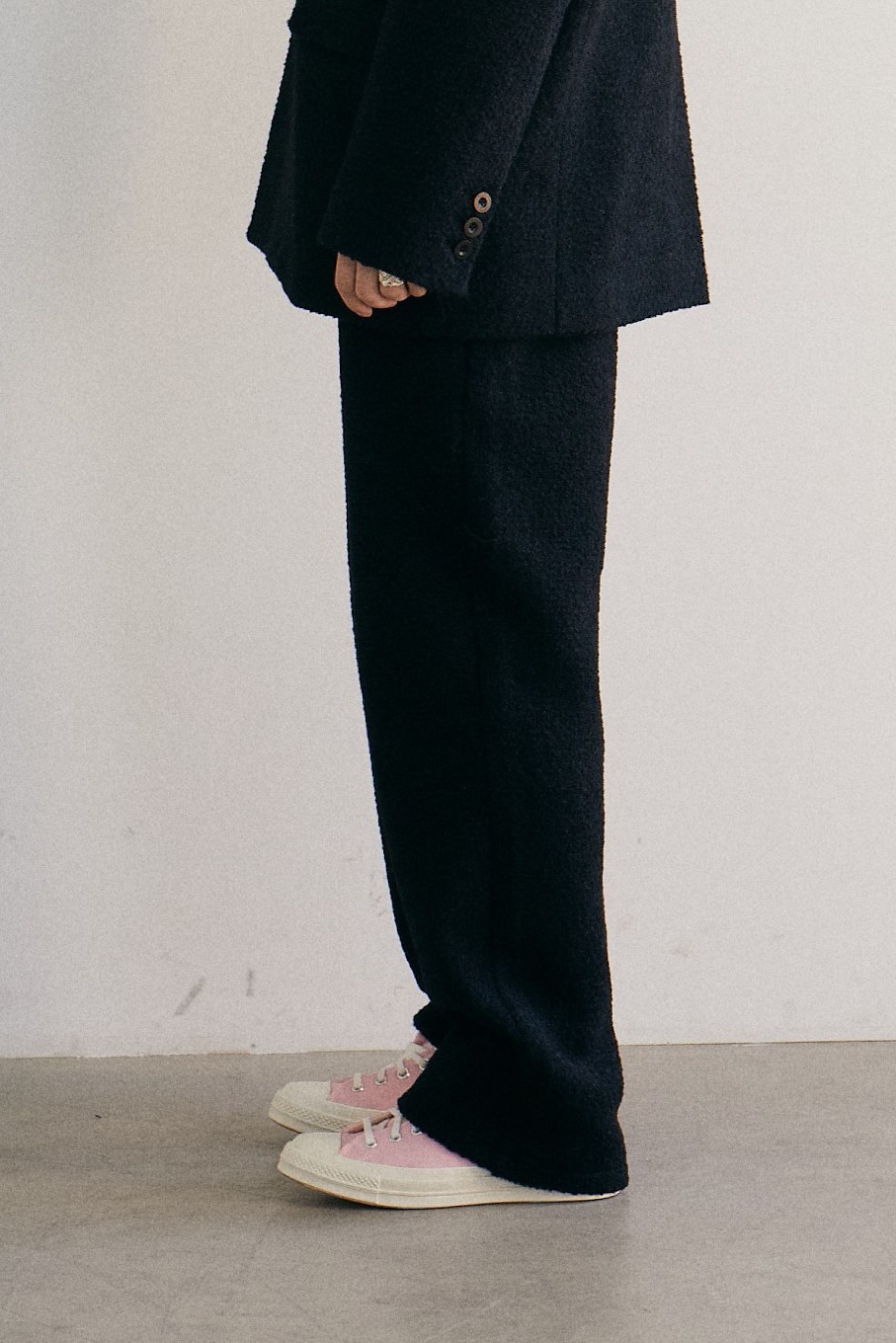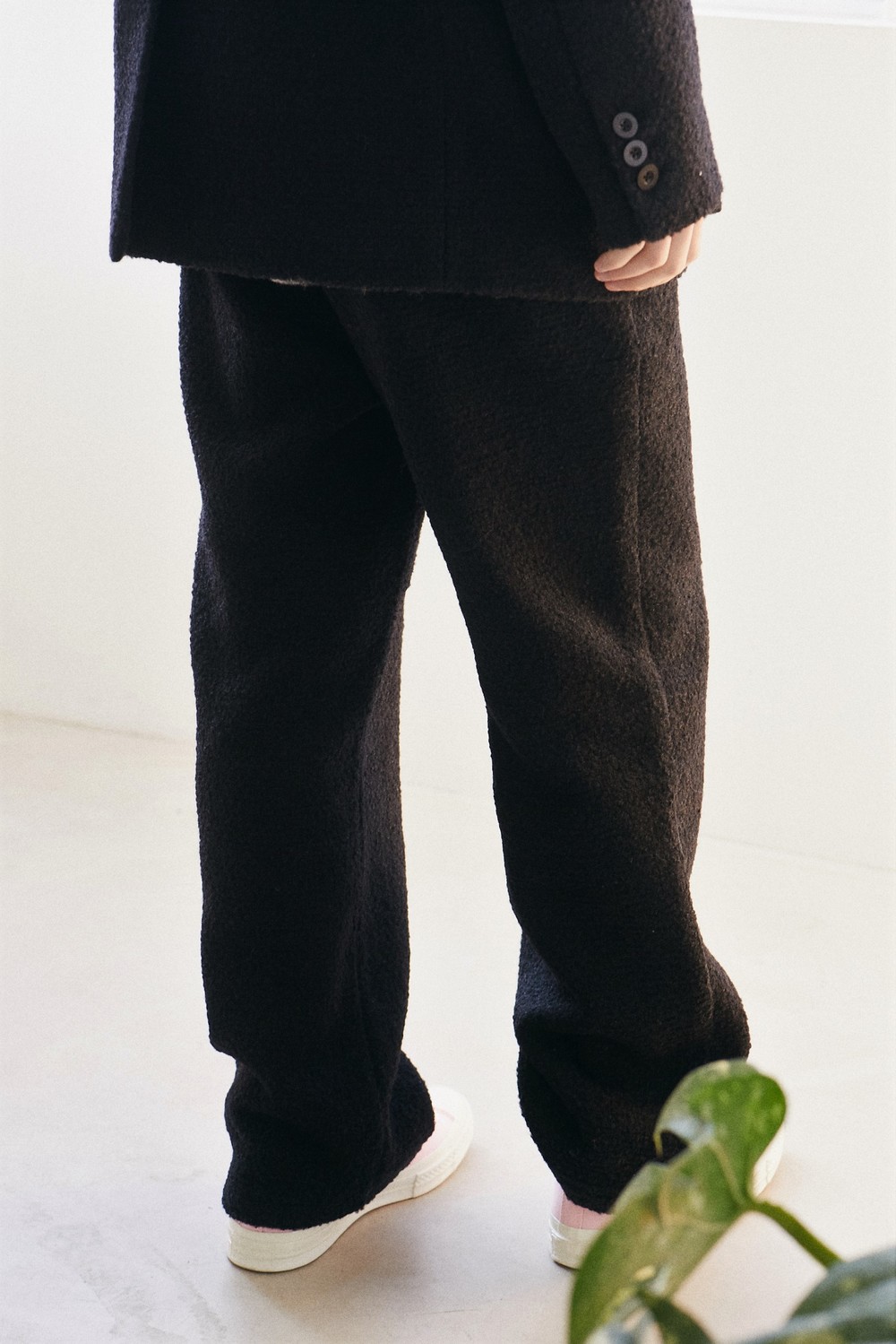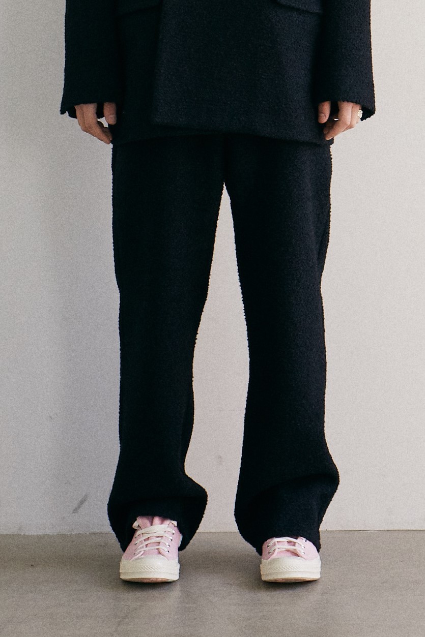 black alpaca tweed band pants